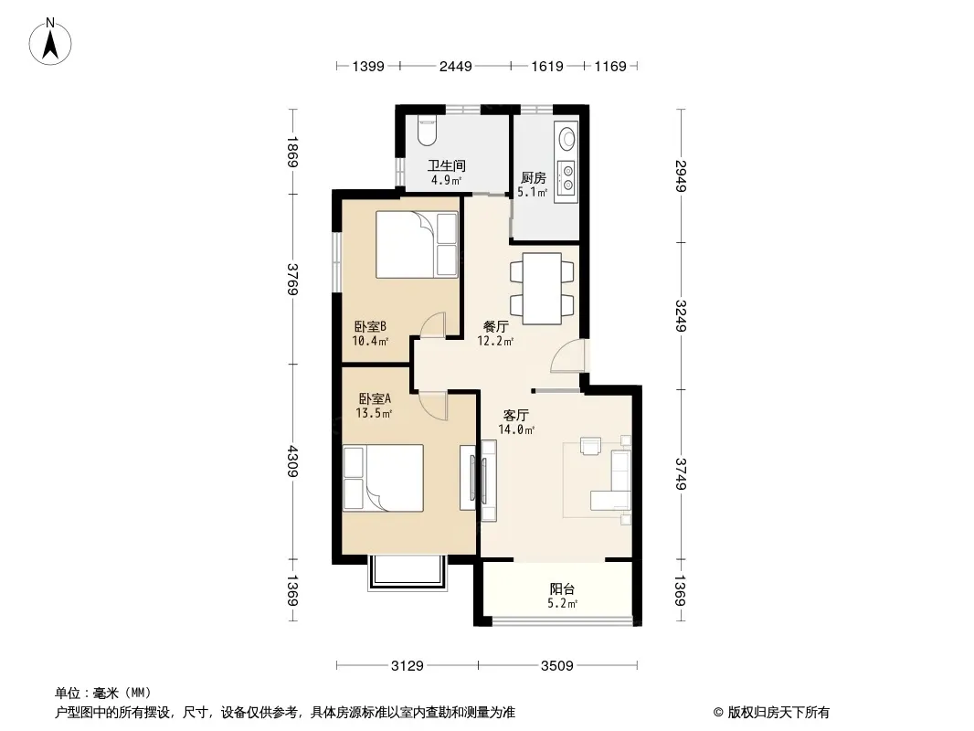 户型齐全,主打户型方正,明卫,明厨,客厅朝南,全明格局三居