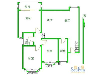 户型齐全,主打明卫,明厨,客厅朝南三居