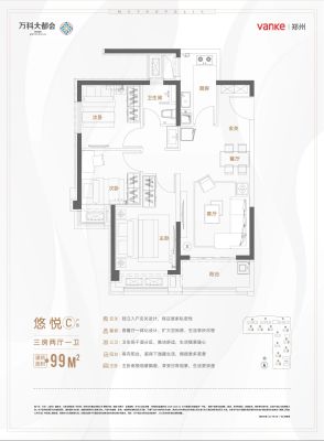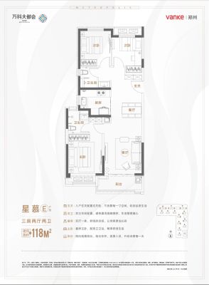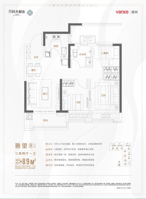 万科大都会·都会天际户型主要有89平-118平的全明格局,户型方正,动静分离,采光充足的三居 、75平-80平的南北通透,全明格局的二居 。