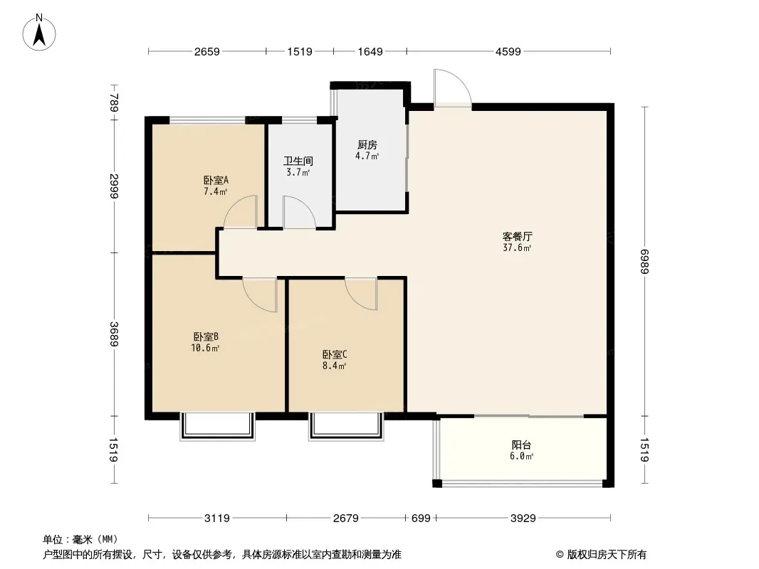 户型齐全,主打南北通透,户型方正三居