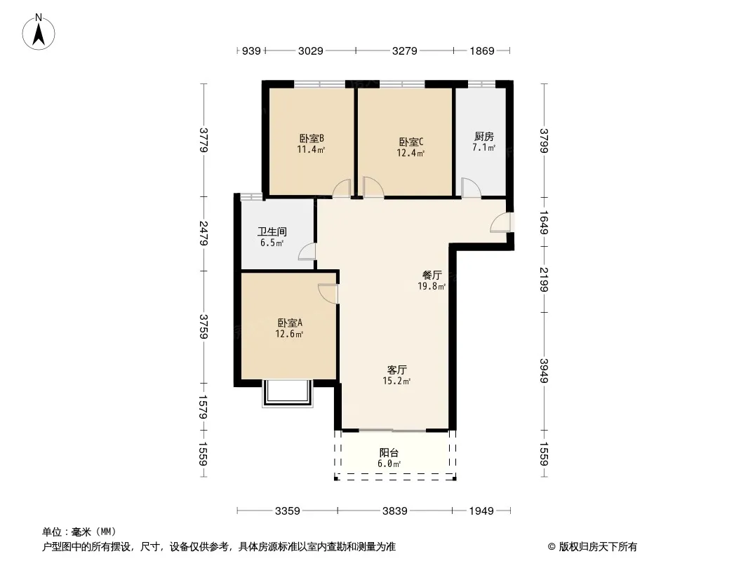 户型齐全,主打南北通透,客厅朝南,主卧带卫三居