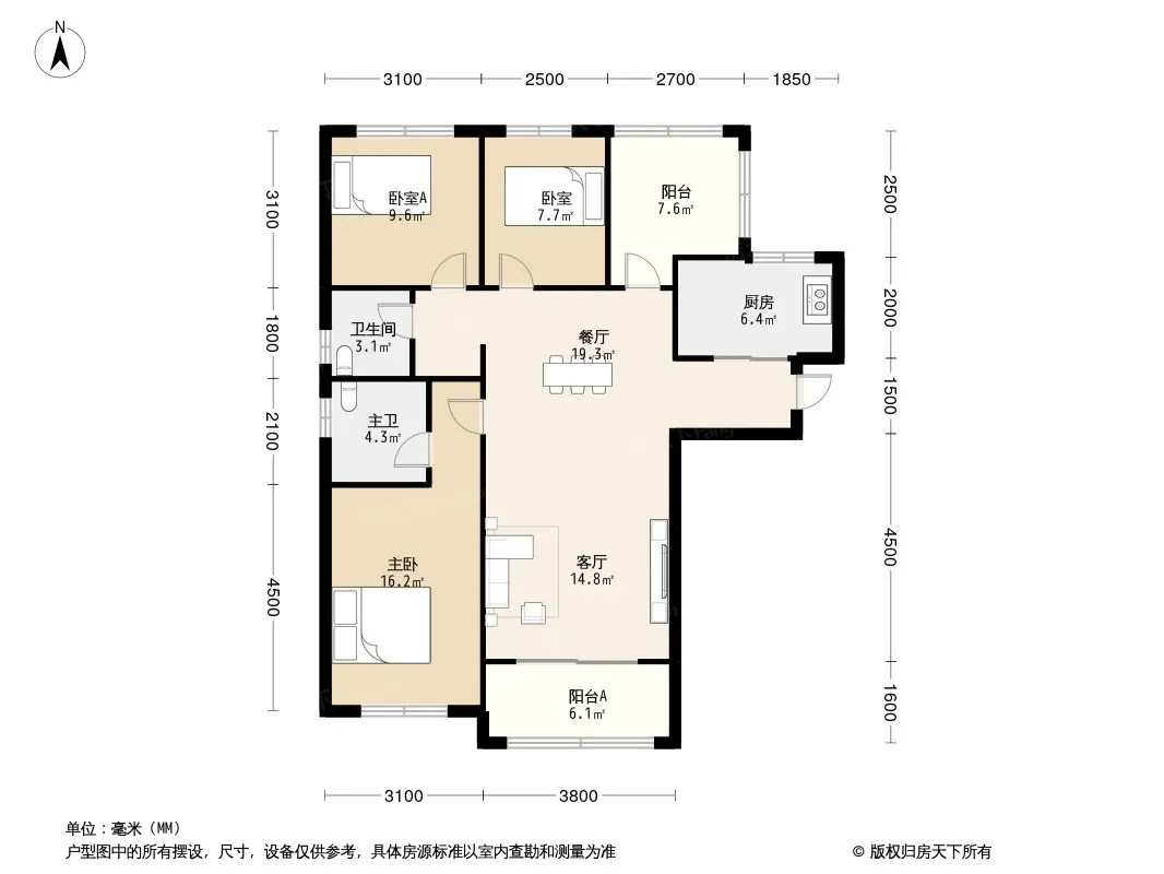 户型齐全,主打南北通透,客厅朝南,主卧带卫三居