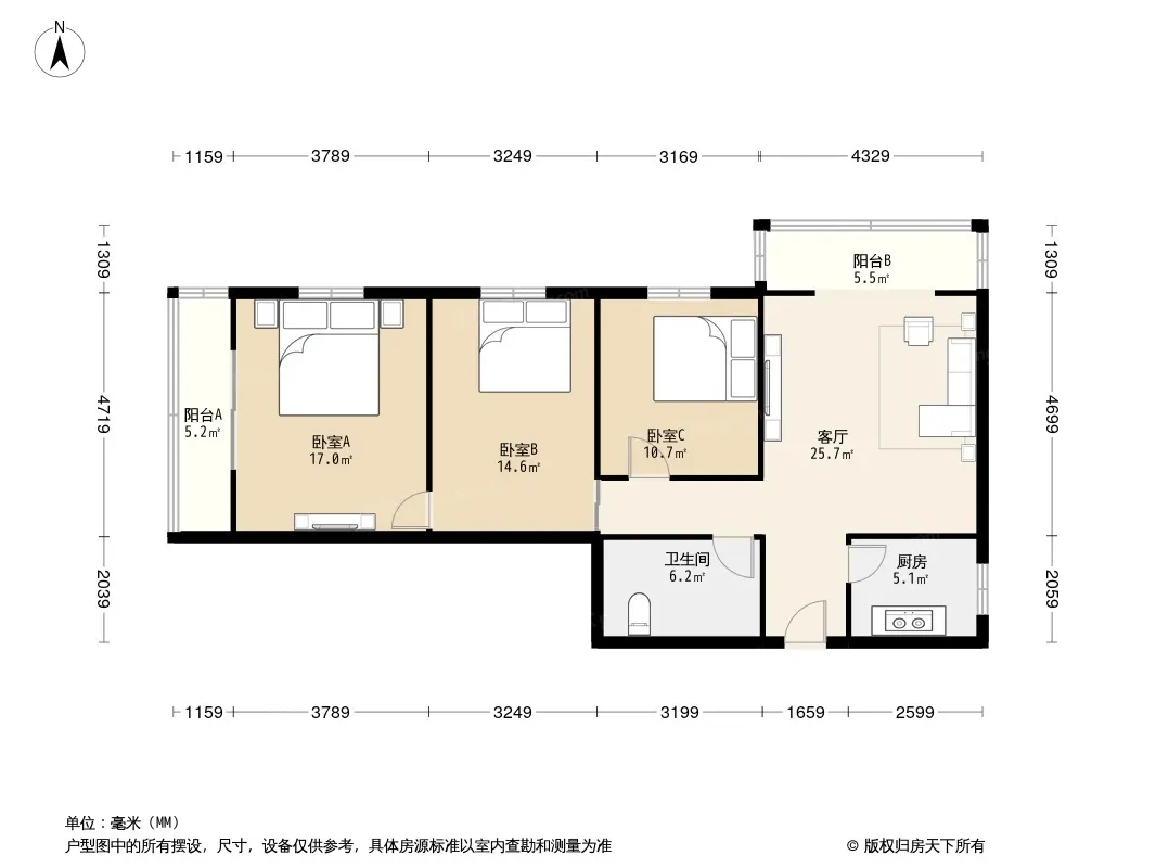 户型齐全,主打明厨,双阳台,双卧朝南三居