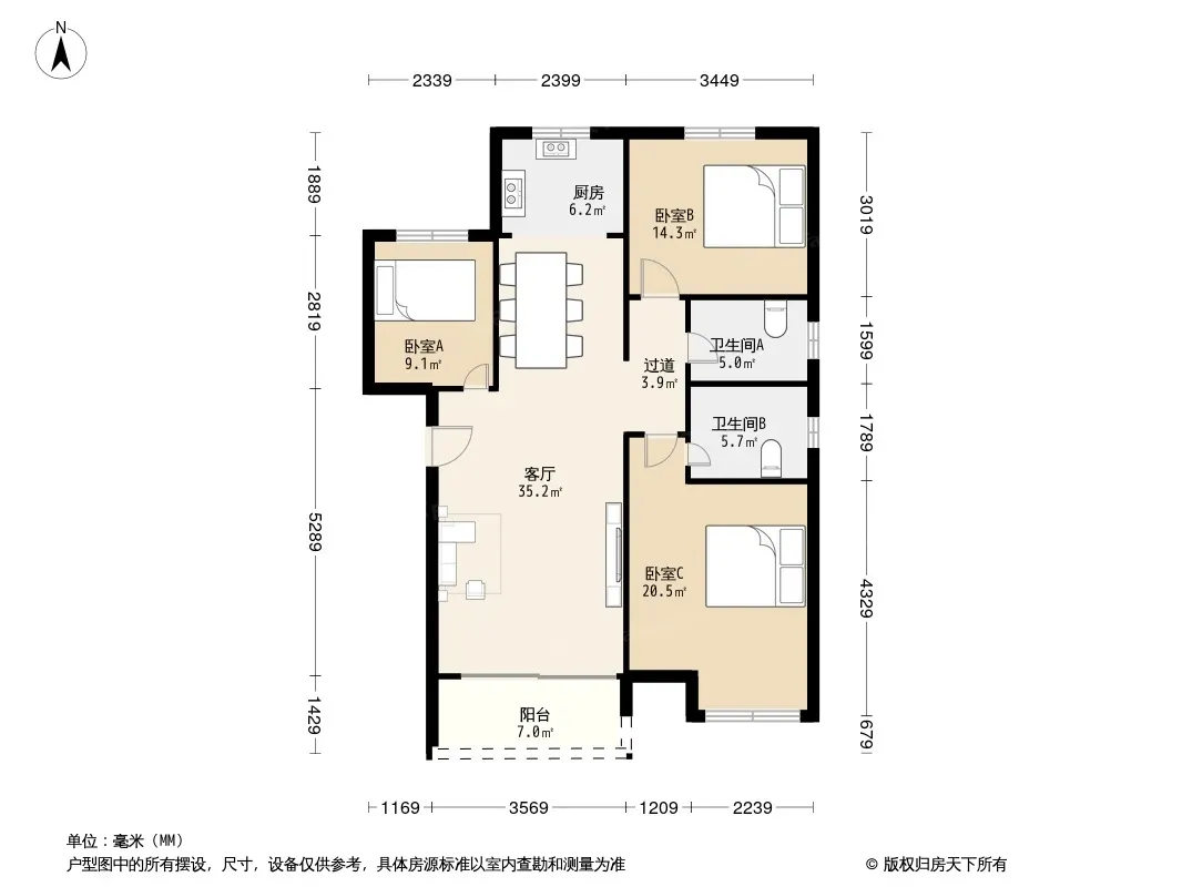 招商天地和苑 3室1厅 南 北