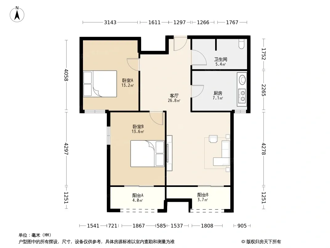户型齐全,主打客厅朝南,卧室朝南,主卧朝南,明厨明卫,干湿分离,双阳台三居