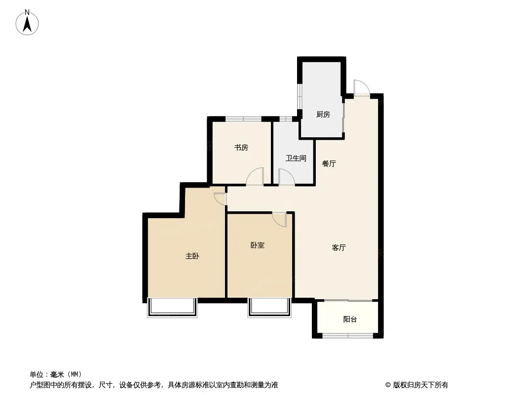 全新装修,一天没住,南北户型,一个北边房间不算面积