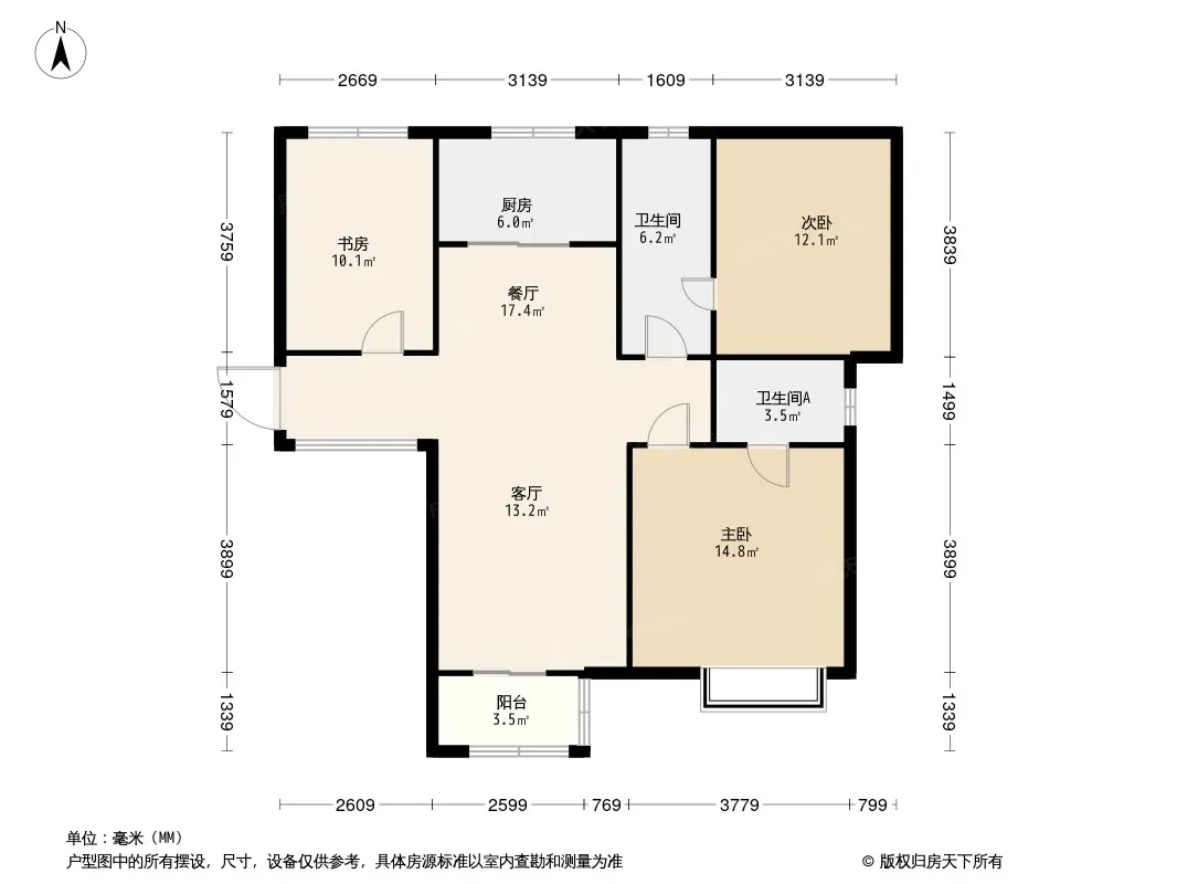 户型齐全,主打南北通透,客厅朝南,主卧朝南,主卧带卫三居