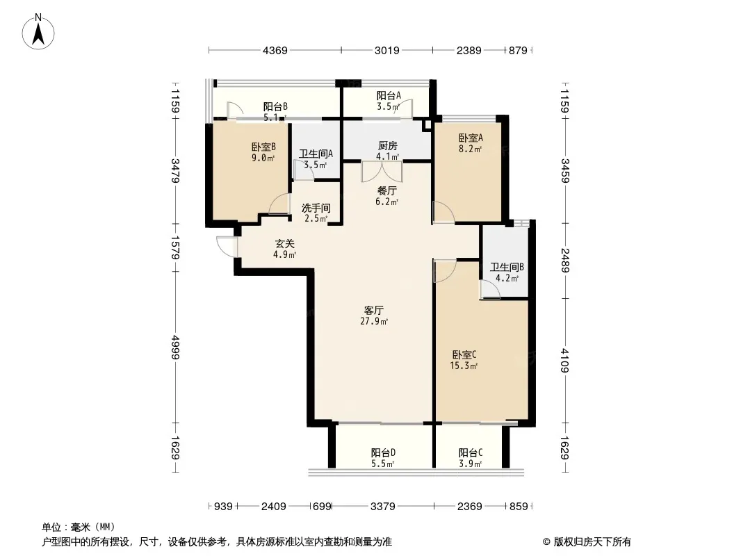 户型齐全,主打户型方正,主卧朝南三居