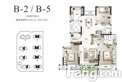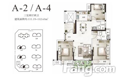户型齐全,主打全明格局,户型方正三居