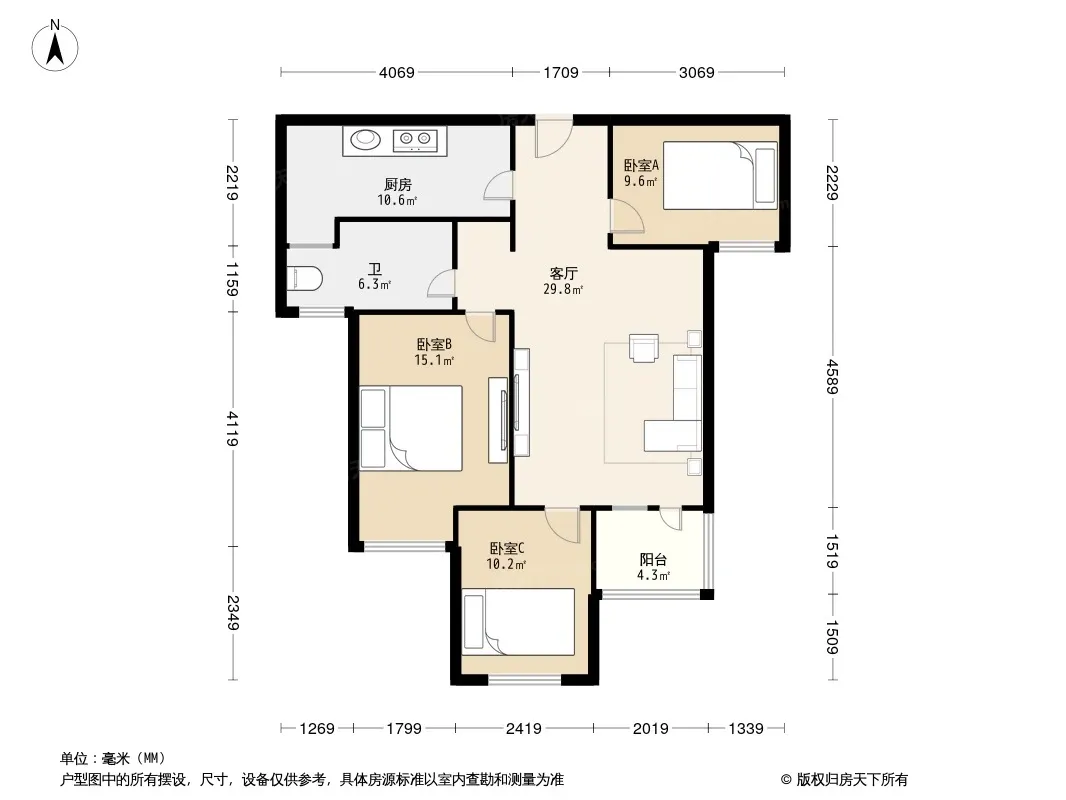 户型齐全,主打全明格局,户型方正,主卧朝南三居