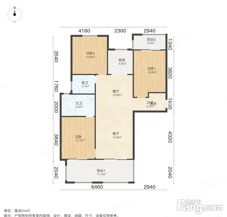 户型齐全,主打客厅朝南,卧室朝南,干湿分离三居