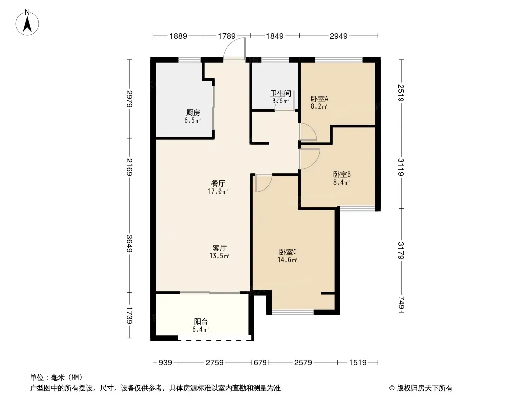 好楼层,刚需小三房轻松入手,户型方正面积适中