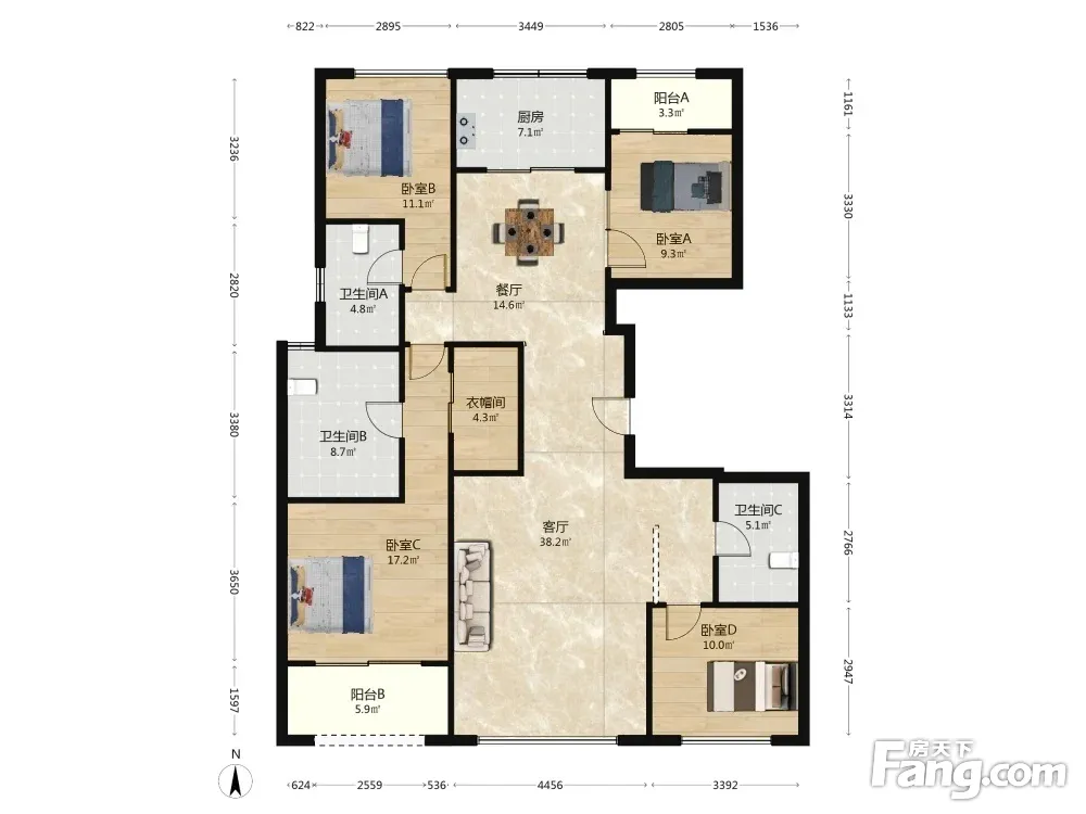 户型齐全,主打南北通透,全明格局四居
