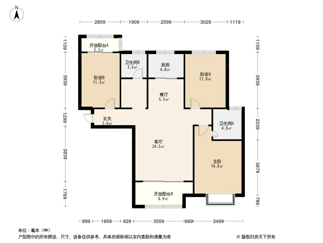 户型齐全,主打南北通透,全明格局,客厅朝南三居