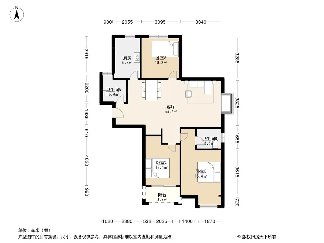 户型齐全,主打明厨,双阳台,双卧朝南,主卧朝南三居