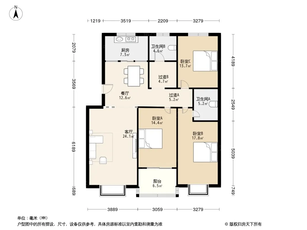 户型齐全,主打户型方正,明卫,客厅朝南,明厨三居