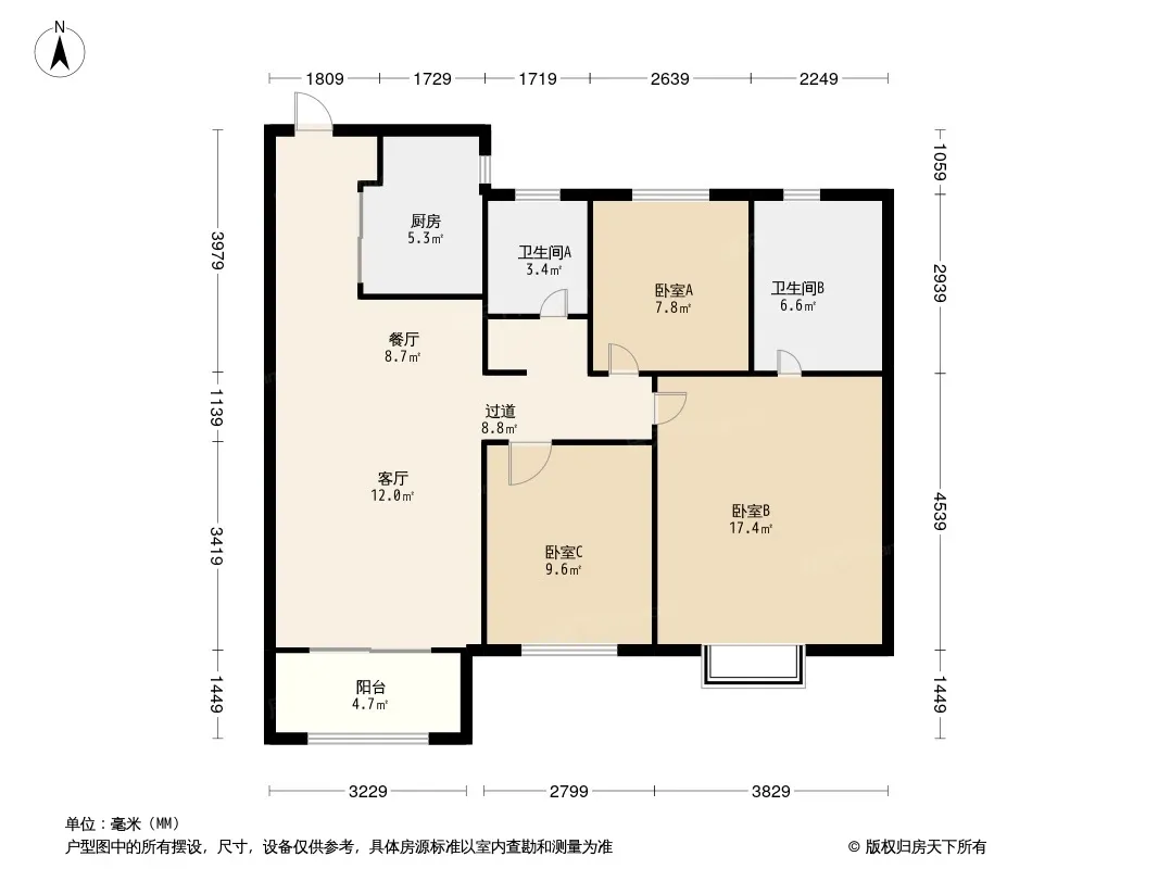 户型齐全,主打南北通透,户型方正三居