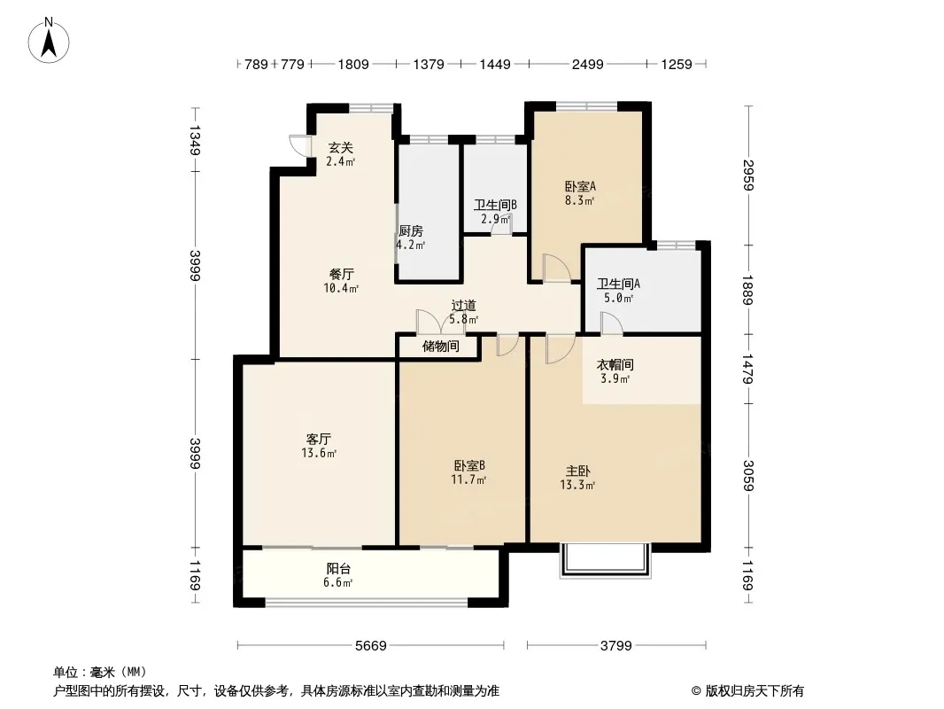 户型齐全,主打南北通透,户型方正,客厅朝南,主卧朝南三居