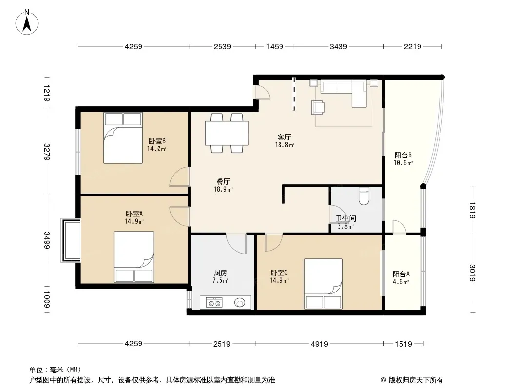 户型齐全,主打双卧朝南三居