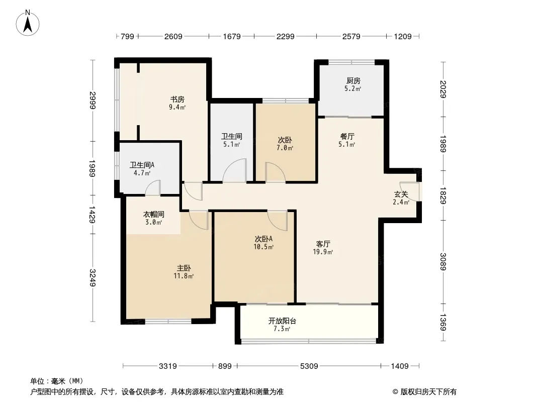 户型齐全,主打全明格局,采光充足三居