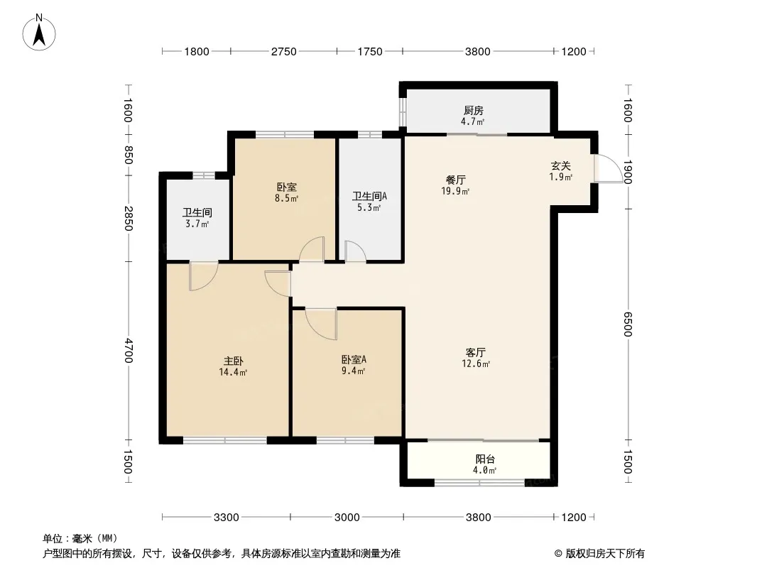 户型齐全,主打南北通透,客厅朝南,主卧朝南三居