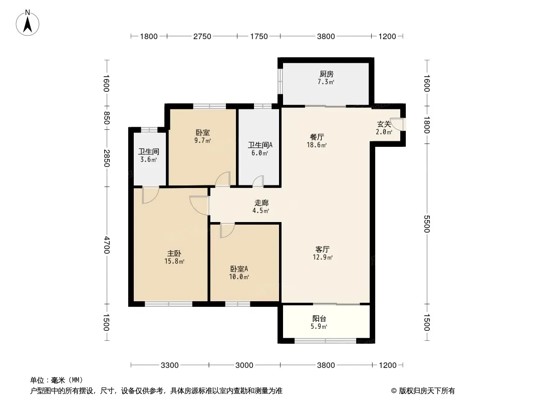 户型齐全,主打南北通透,客厅朝南,主卧朝南三居