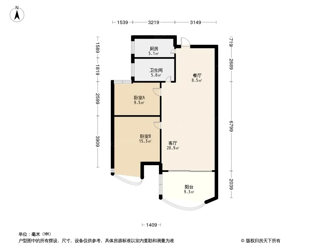户型齐全,主打南北通透,全明格局,户型方正三居
