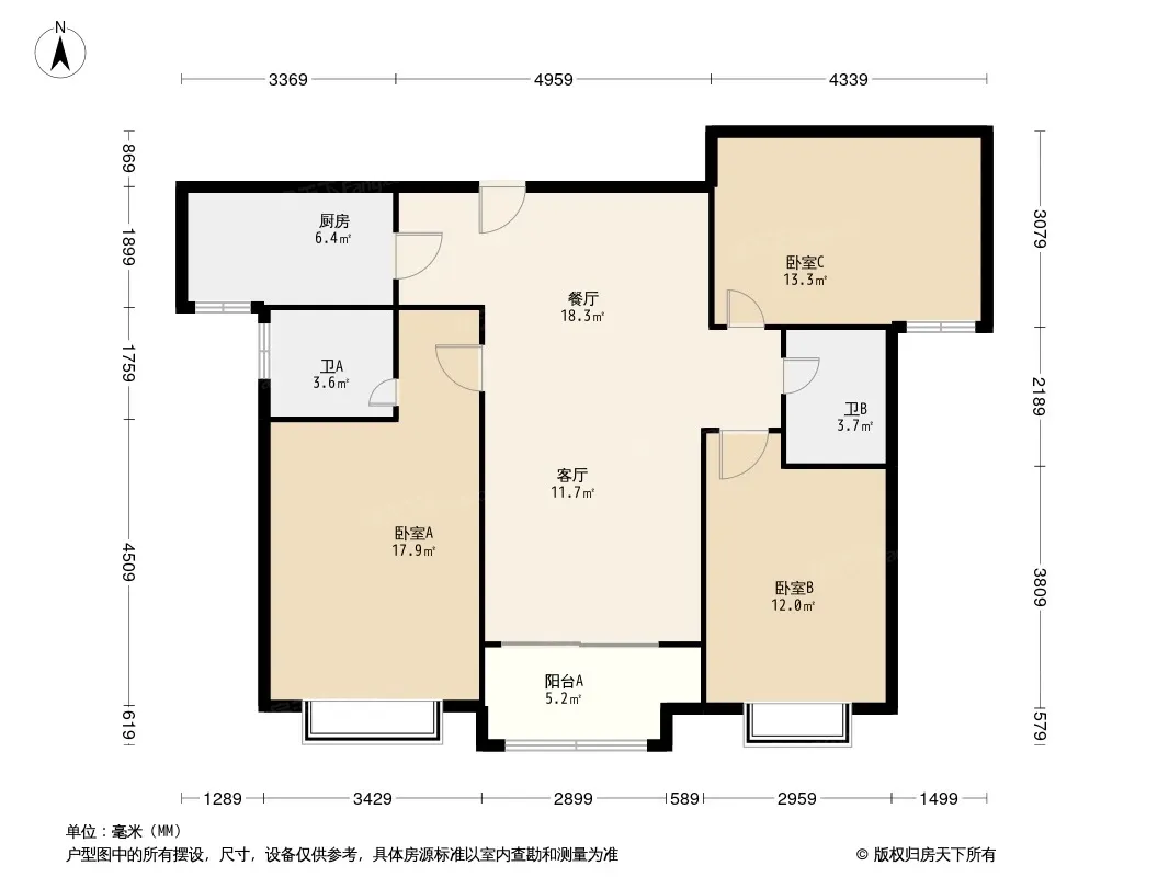 户型齐全,主打南北通透,全明格局三居