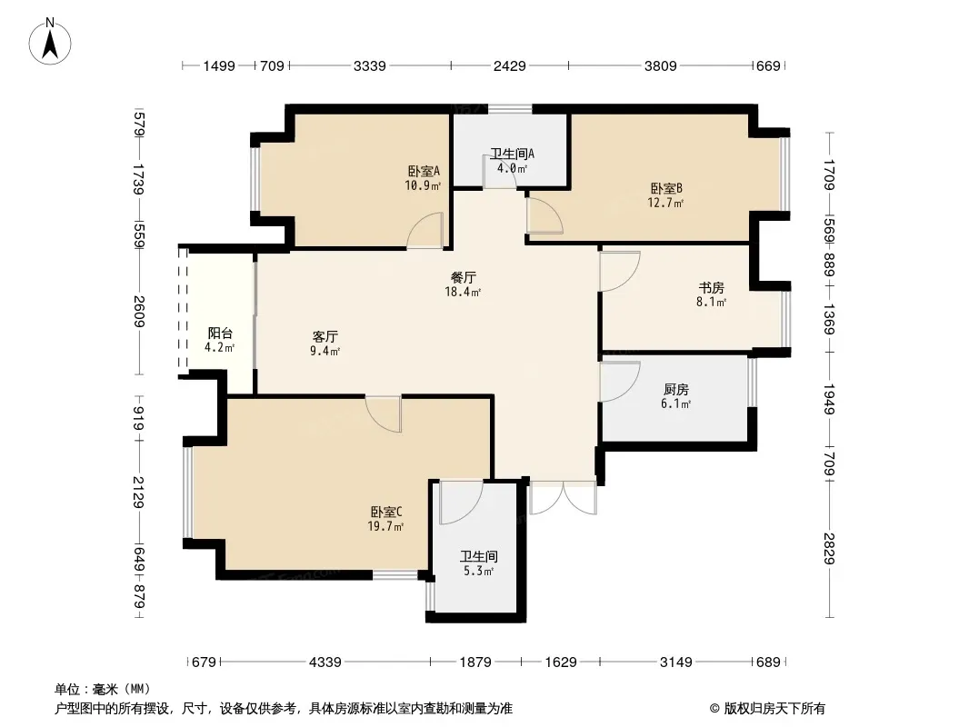 户型齐全,主打南北通透,全明格局三居