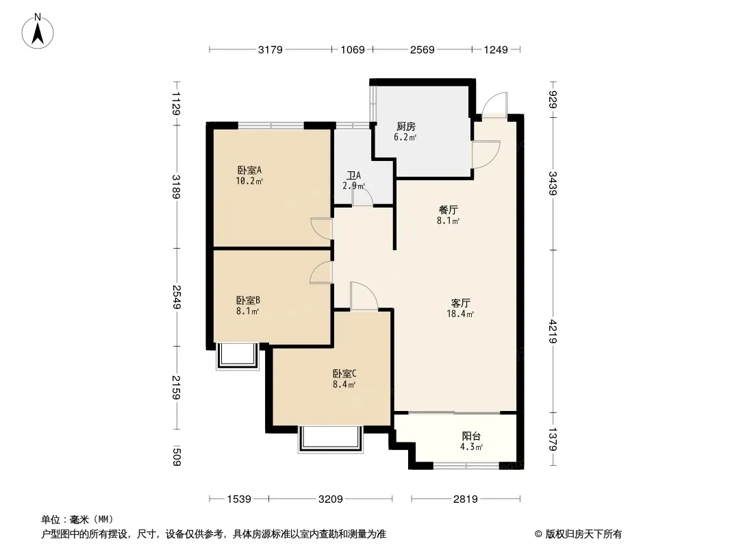 户型齐全,主打客厅朝南,主卧朝南三居