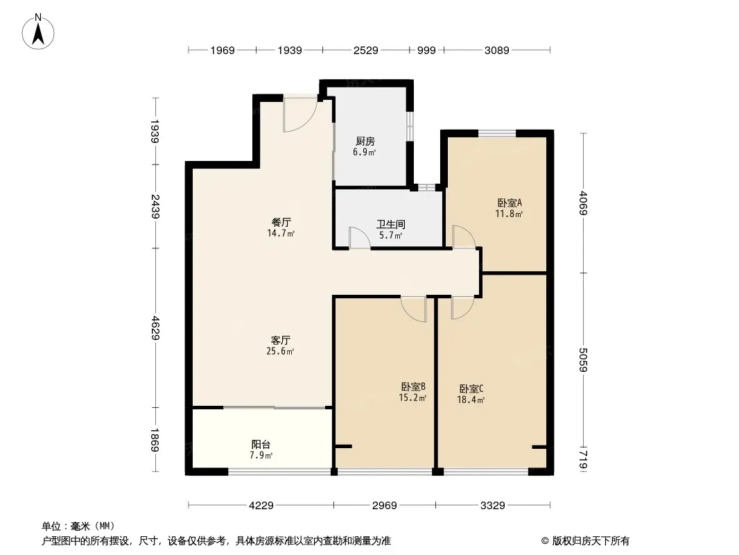 户型齐全,主打南北通透,客厅朝南,主卧朝南三居