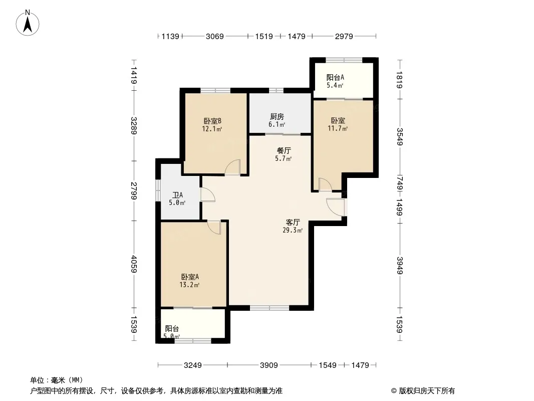 户型齐全,主打南北通透,全明格局,户型方正三居
