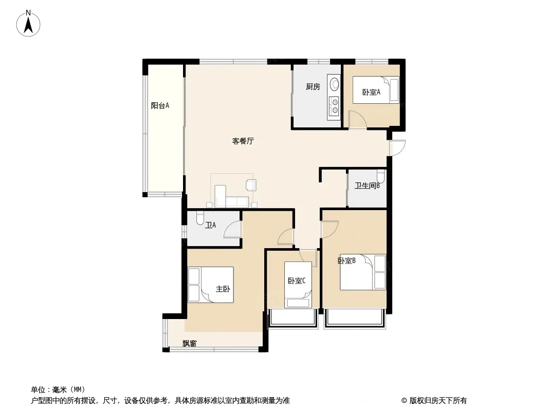 户型齐全,主打南北通透,全明格局三居