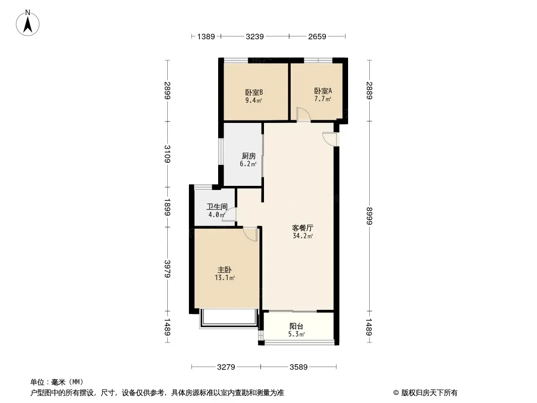 户型齐全,主打南北通透,全明格局三居