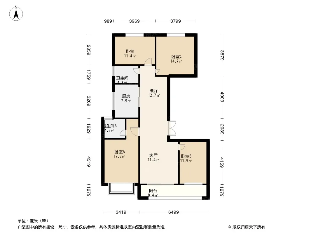 户型齐全,主打南北通透,全明格局,户型方正四居