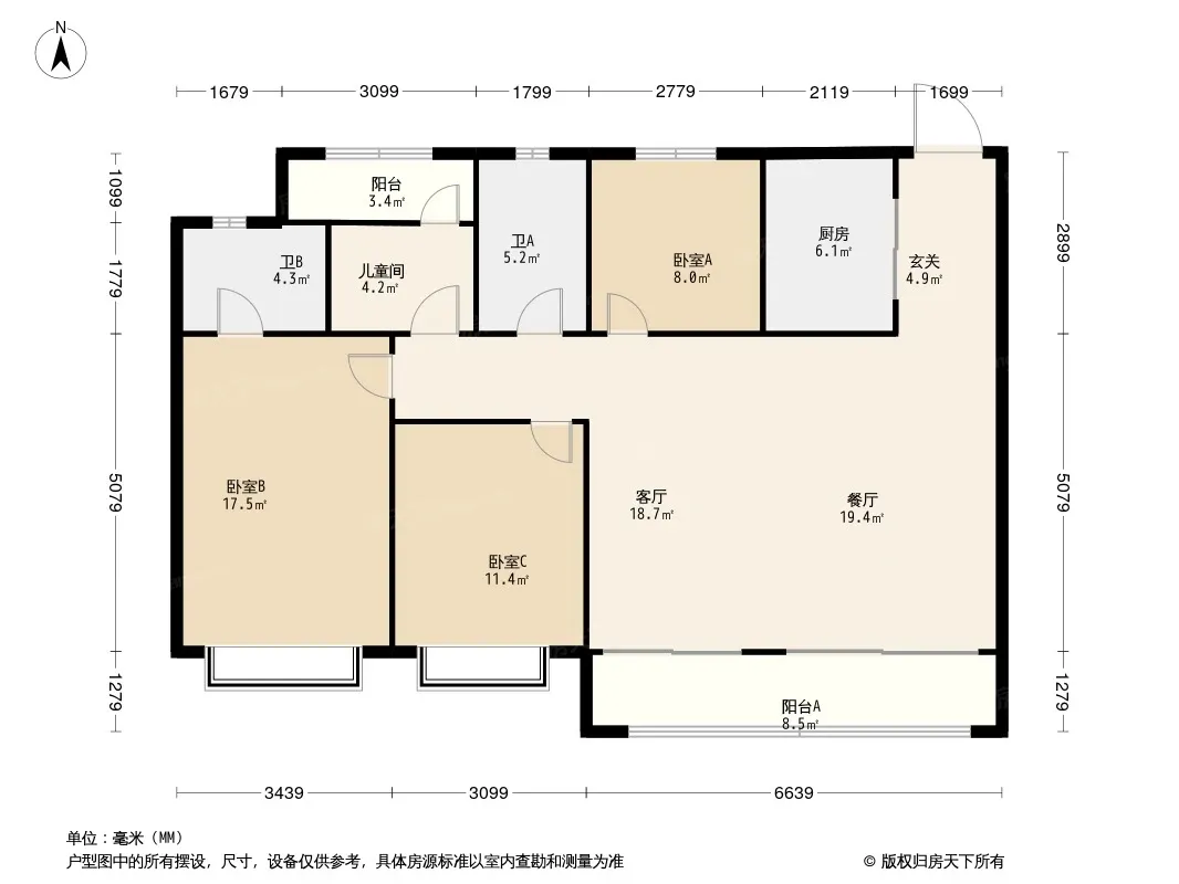 户型齐全,主打南北通透,户型方正四居
