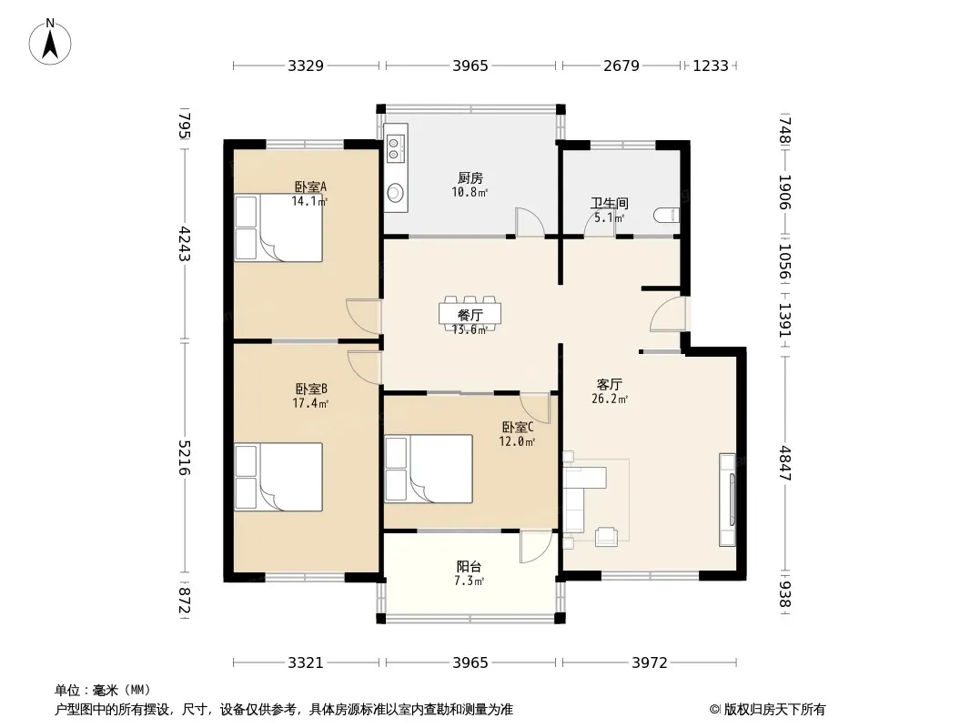 户型齐全,主打户型方正,明卫,明厨,客厅朝南,主卧朝南三居