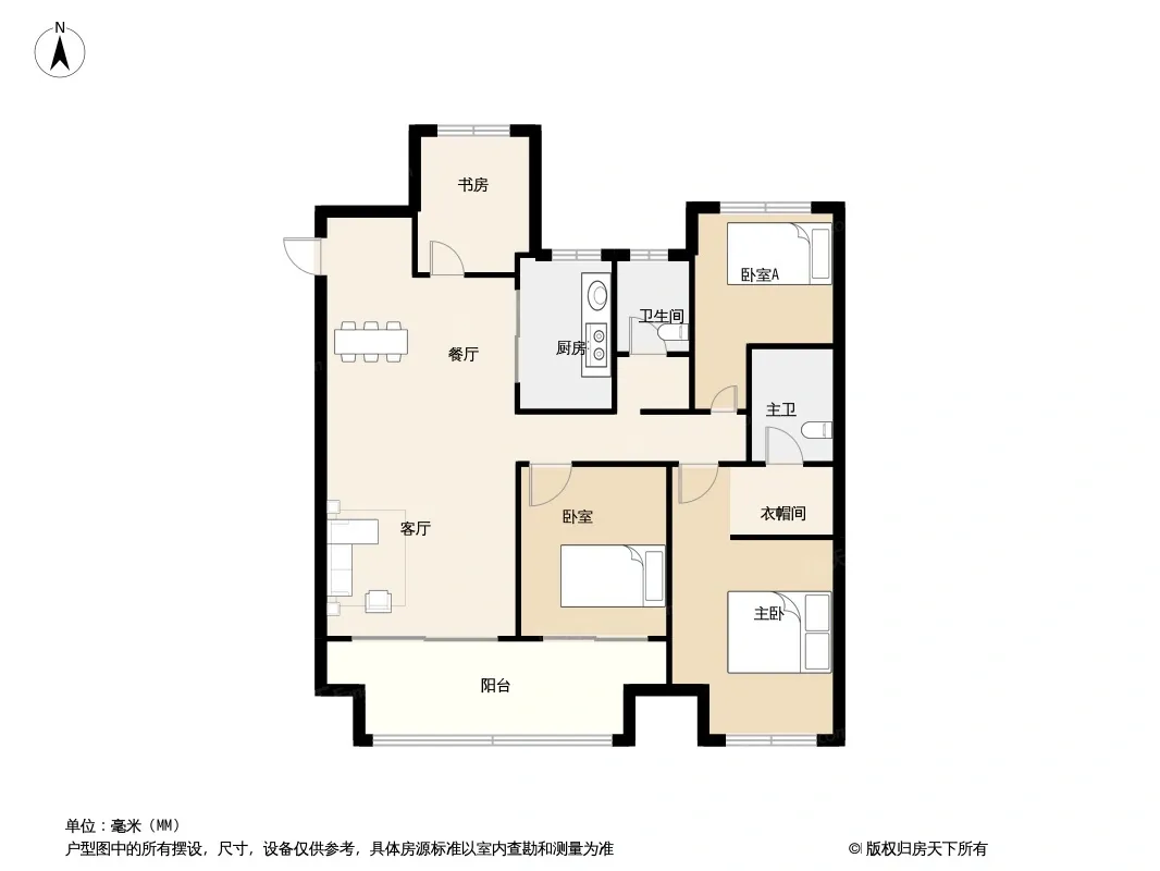 户型齐全,主打南北通透,户型方正,客厅朝南,主卧带卫四居