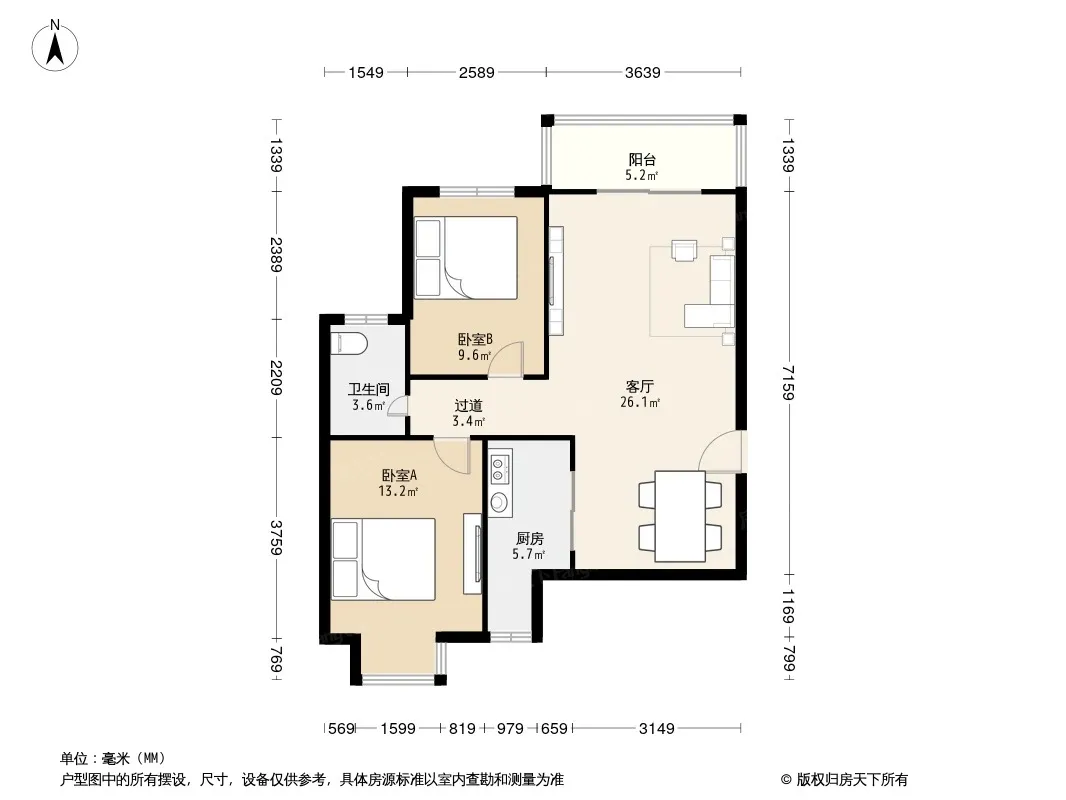 户型齐全,主打主卧朝南三居