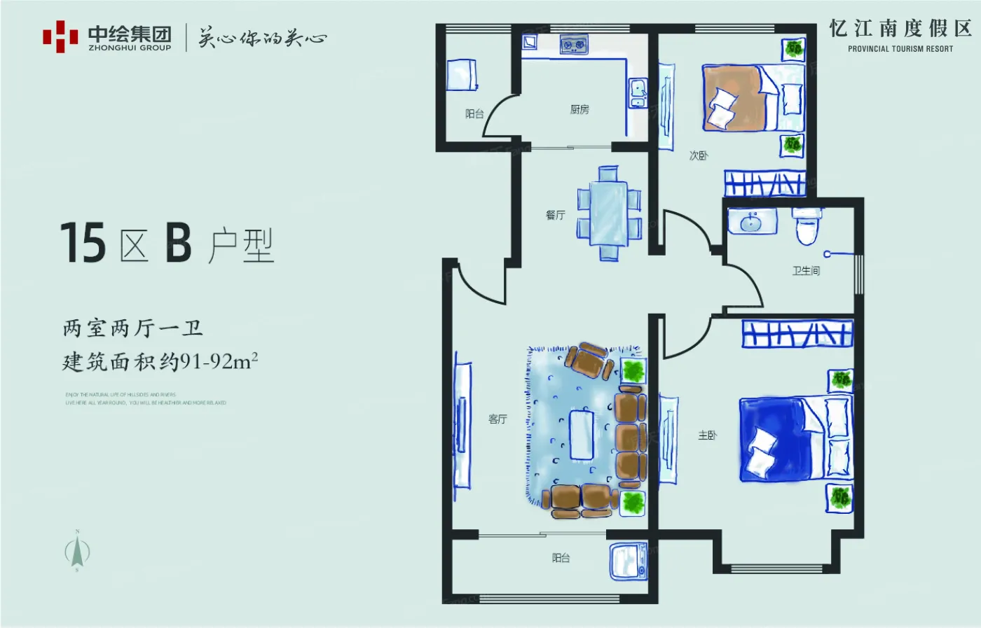 忆江南度假区户型主要有87平-91平的的二居 、307平-425平的南北通透,客厅朝南的五居 、120平-120平的南北通透,客厅朝南,主卧朝南的三居 。