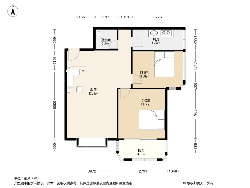 户型齐全,主打明厨,客厅朝南二居