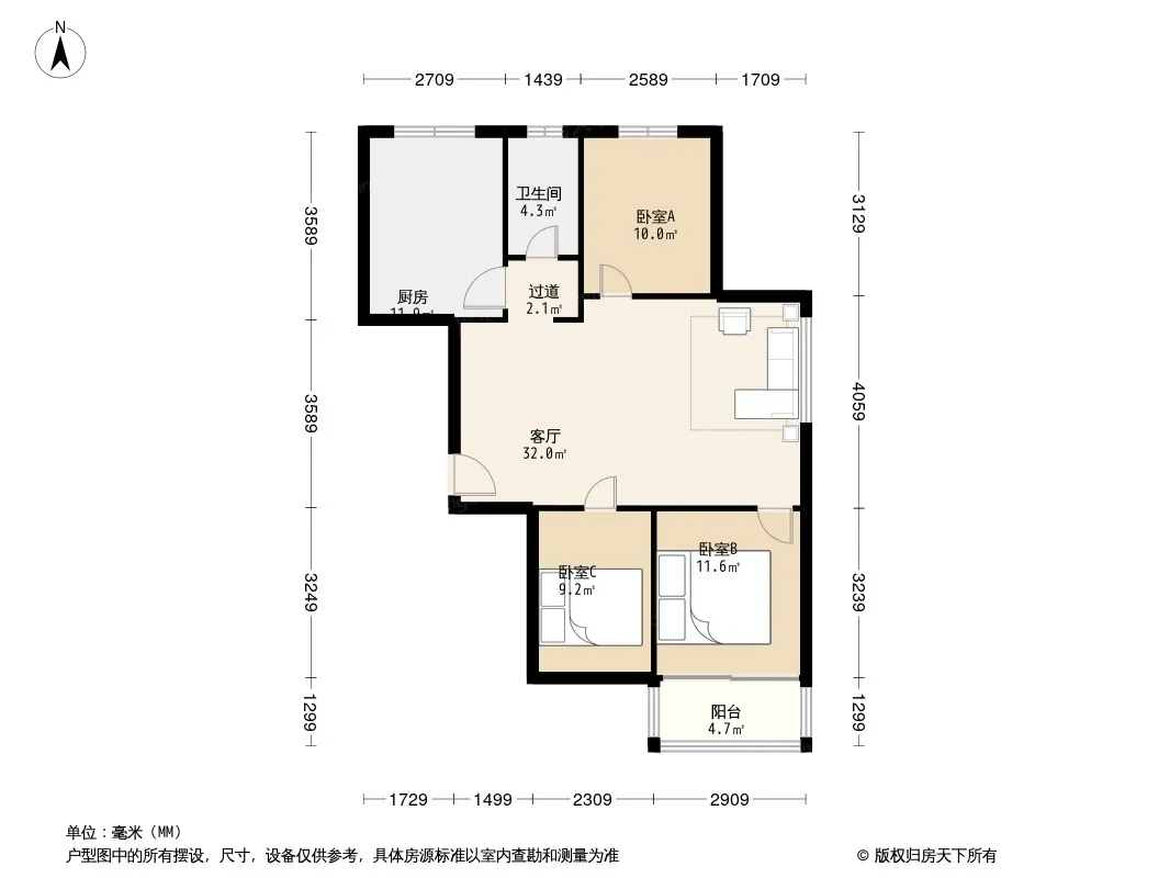 户型齐全,主打户型方正,明卫,客厅朝南,双卧朝南,主卧朝南三居