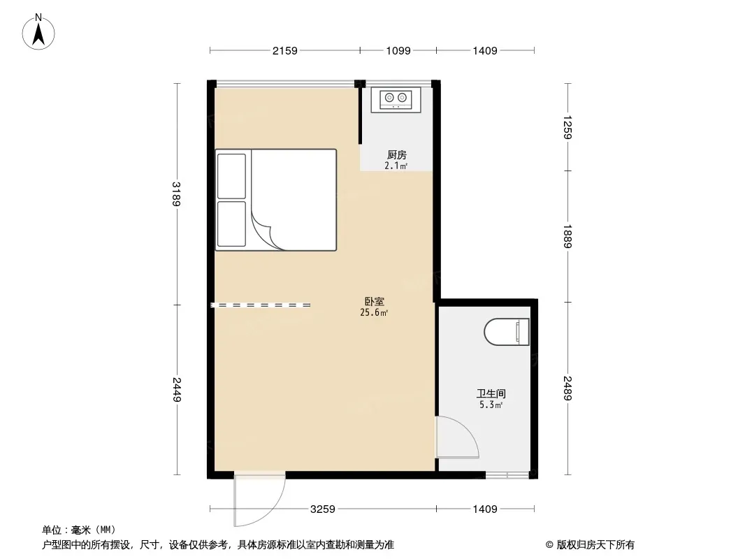 户型齐全,主打明厨,明卫,客厅朝南,全明格局一居