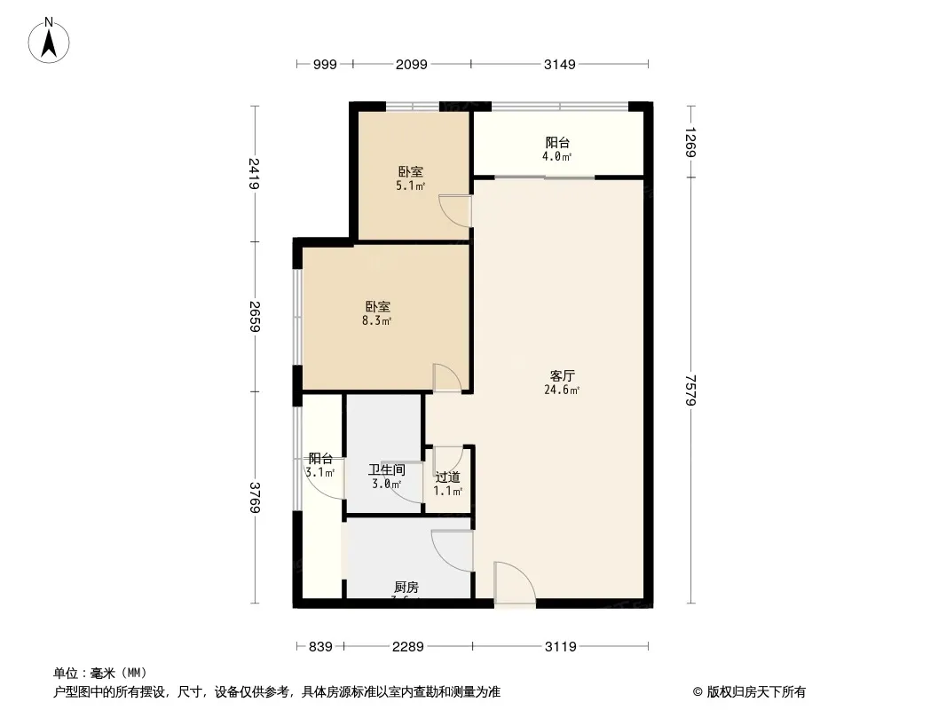 户型齐全,主打客厅朝南,主卧朝南二居