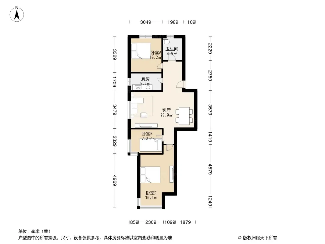 东方港湾3室1厅南