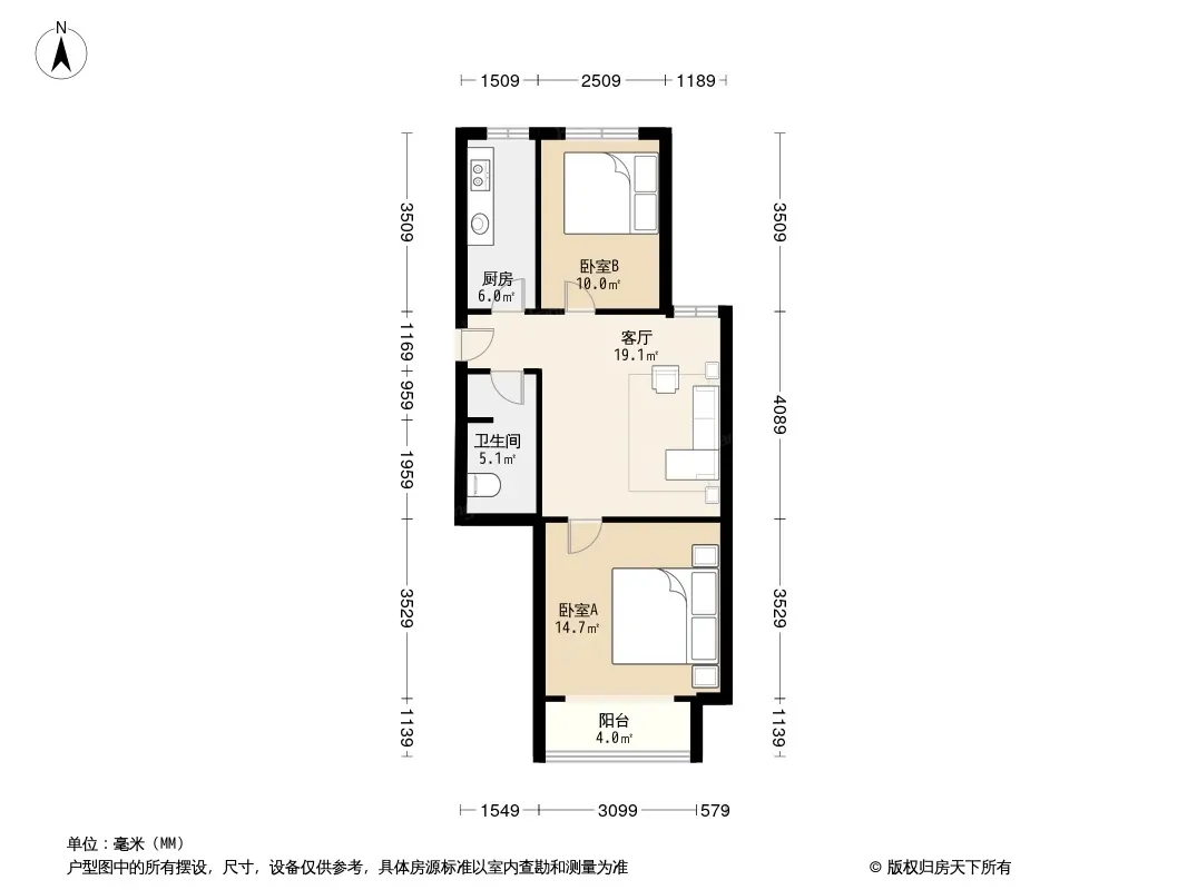 户型齐全,主打户型方正,客厅朝南,主卧朝南二居