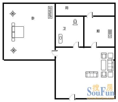 标准一室一厅 ,朝南,客厅带阳台