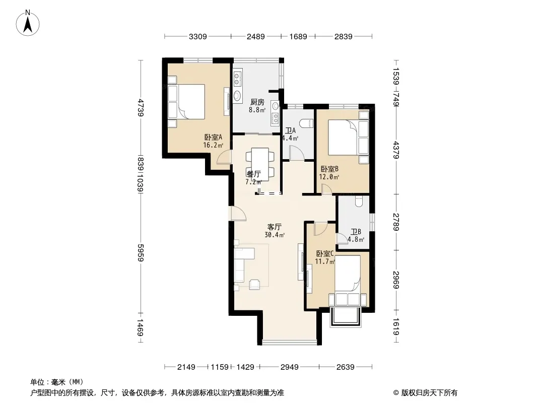 户型齐全,主打明厨,主卧朝南三居
