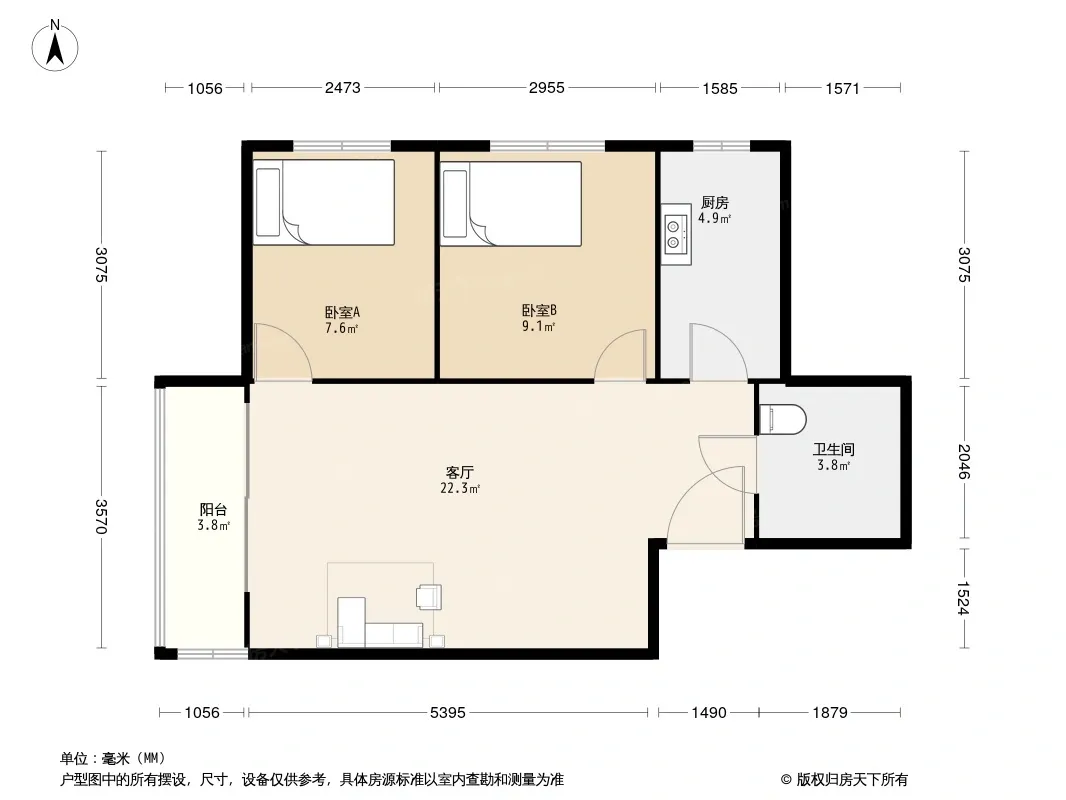 户型齐全,主打明厨,明卫,客厅朝南,双卧朝南三居