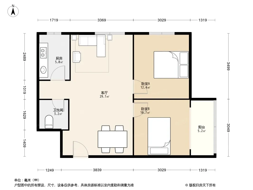 户型齐全,主打明厨,明卫,主卧朝南三居